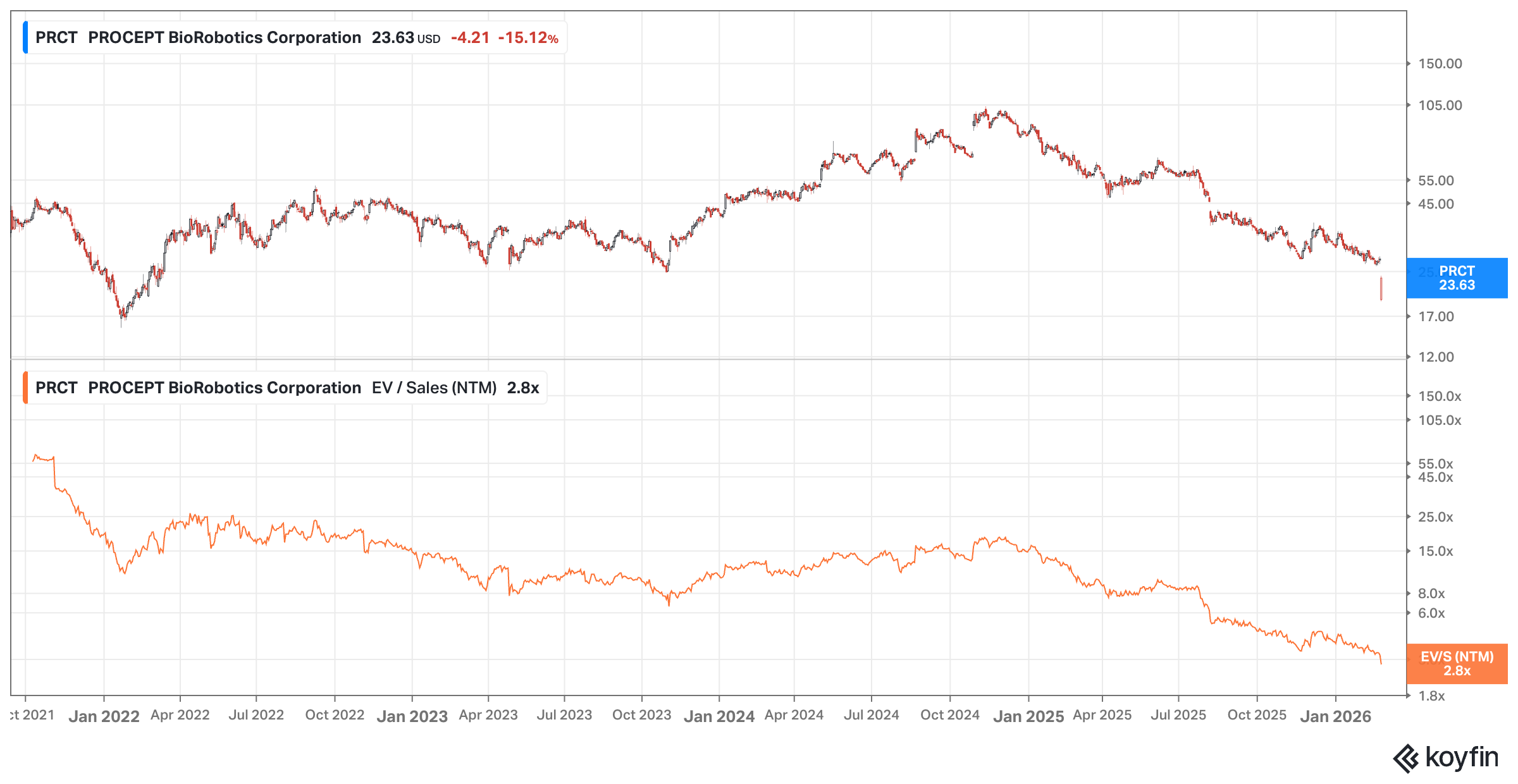 We’ll talk about both here. Consensus numbers remain pretty cautious on both counts, and not unreasonably so. Hypergrowth always fades eventually, while PRCT has shown relatively slow progress on operating leverage so far. Even fast growing companies have to demonstrate that they can make money in the end - what’s the point otherwise? But Larry is proposing to run the company in a different way than in the past - if he gets it right then there’s no particular reason why we shouldn’t see growth remain at a relatively high level for while and see margins shoot up faster than expected. The proof will be in the pudding, as they say.